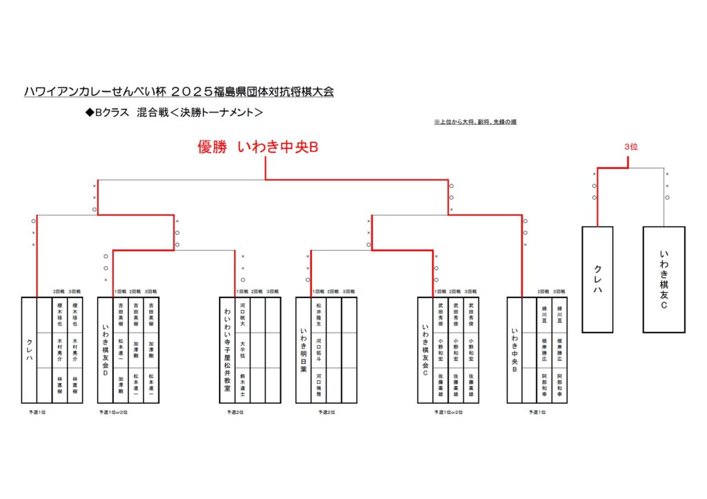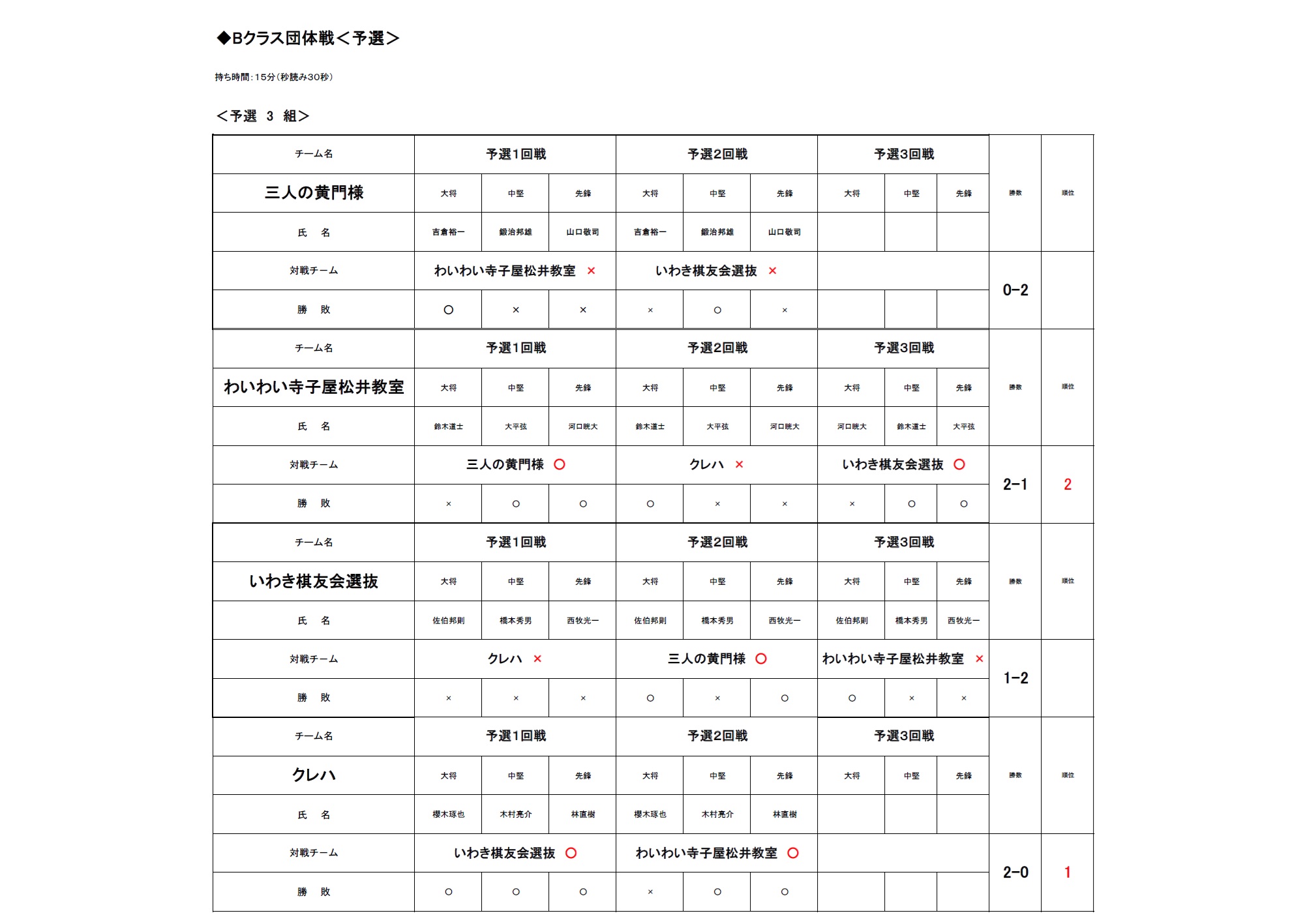 準優勝 | いわき棋友会D | 吉田英樹、松本進一、加澤剛 |