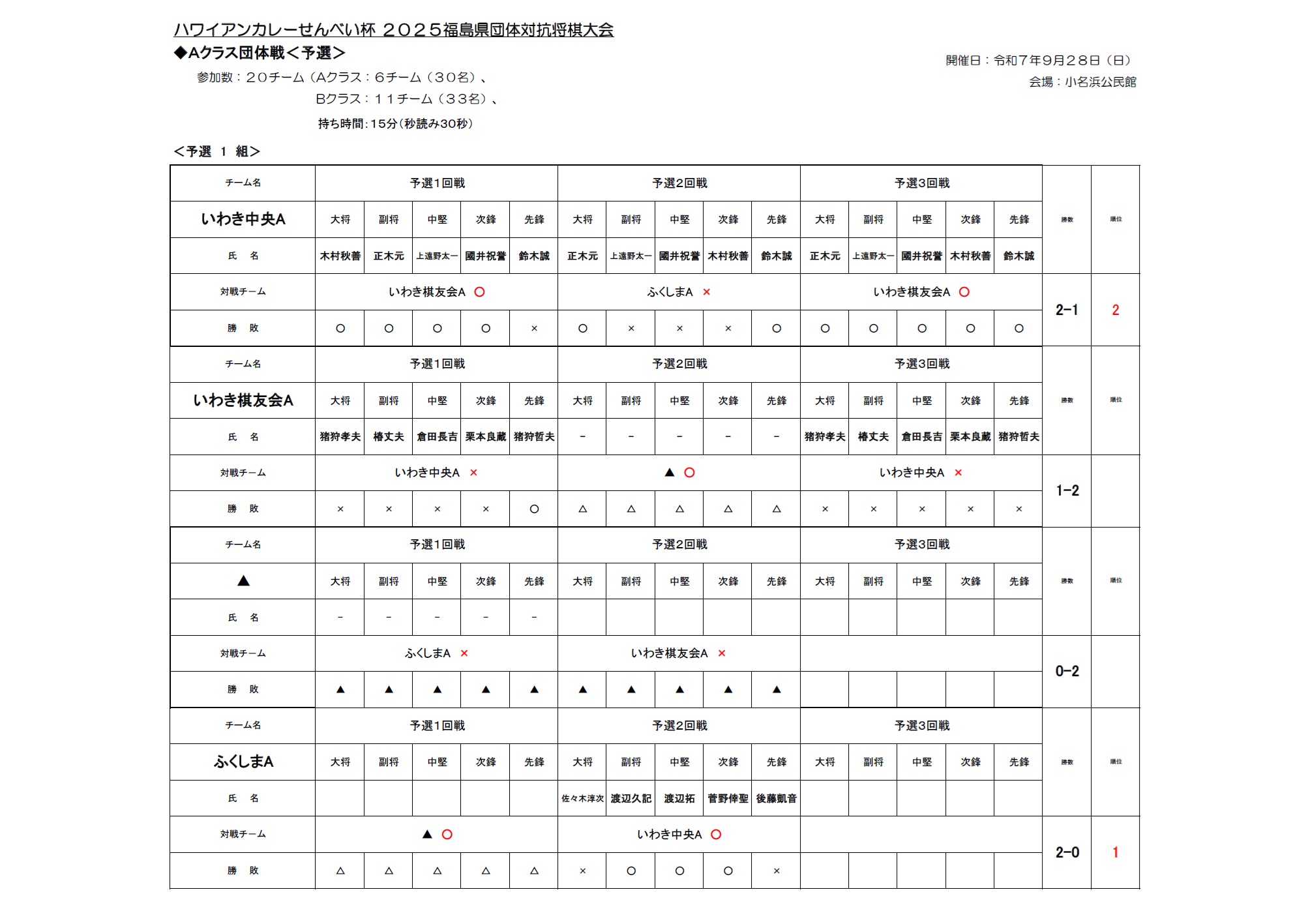 前列 Aクラス優勝チーム「いわき棋友会B」