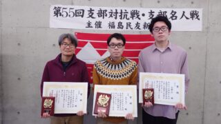 場所:喜多方市塩川公民館主催:日本将棋連盟福島県支部連合会主管:会津三支部(会津王将会支部、会津支部、会津若松支部)後援:福島民友新聞社県内より19名の選手が参加し、二段戦の部、初段戦の部の2部門に分かれ、予選リーグ/トーナメント戦にて熱戦...
